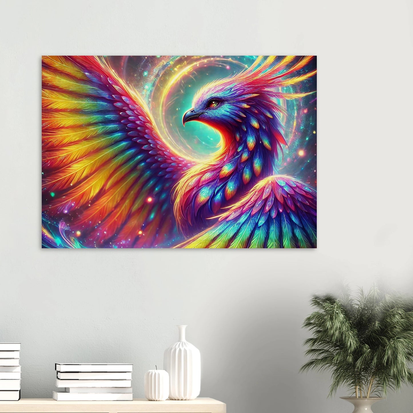 Ein Phönix, geboren aus reinem Licht, dessen Gefieder alle Farben spiegelt. Er entfacht Hoffnung in dunklen Zeiten und trägt die Magie der Farbsphären in jede Umgebung.