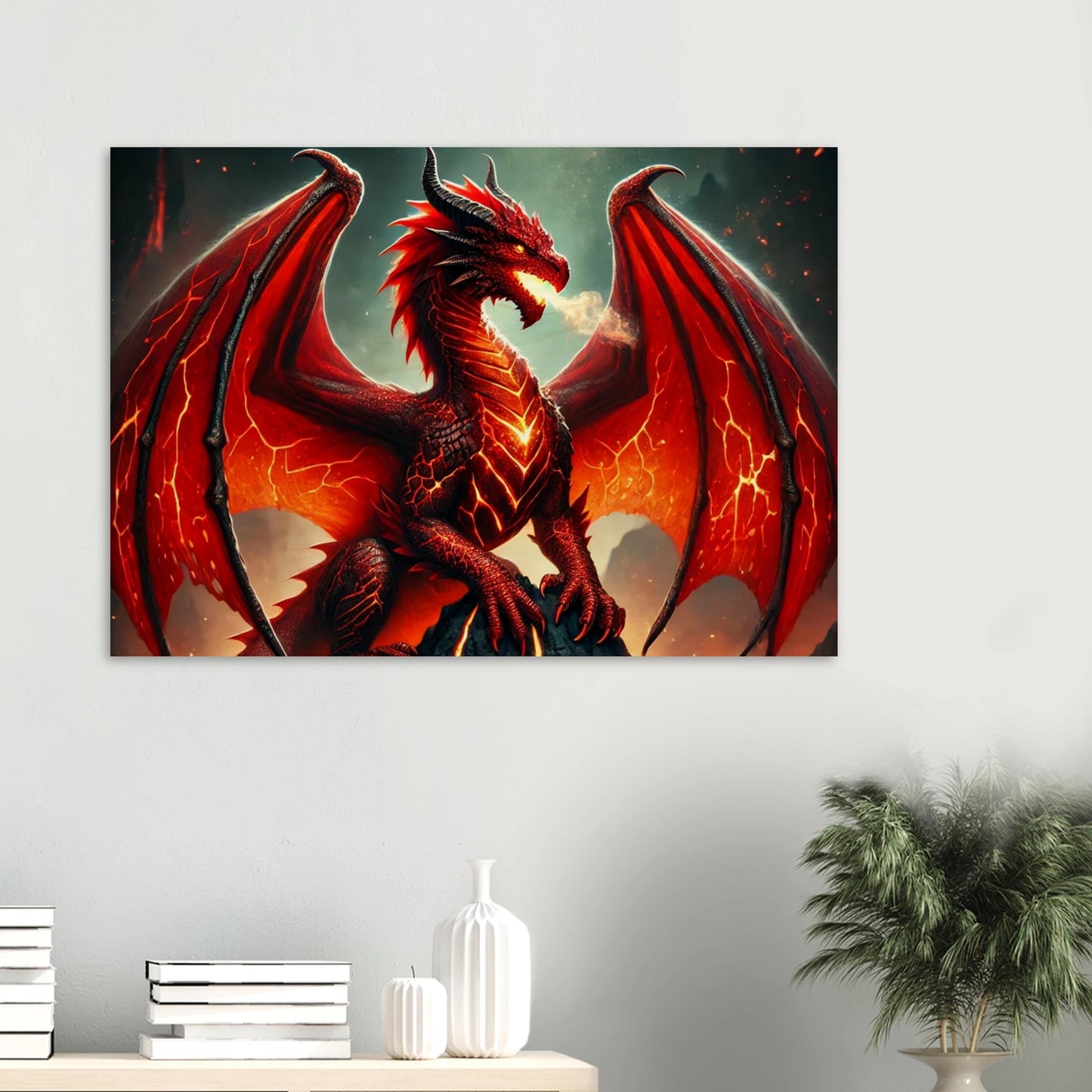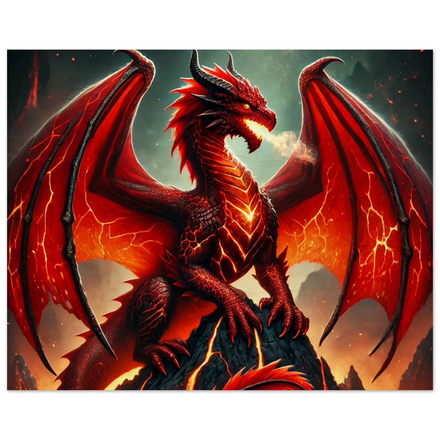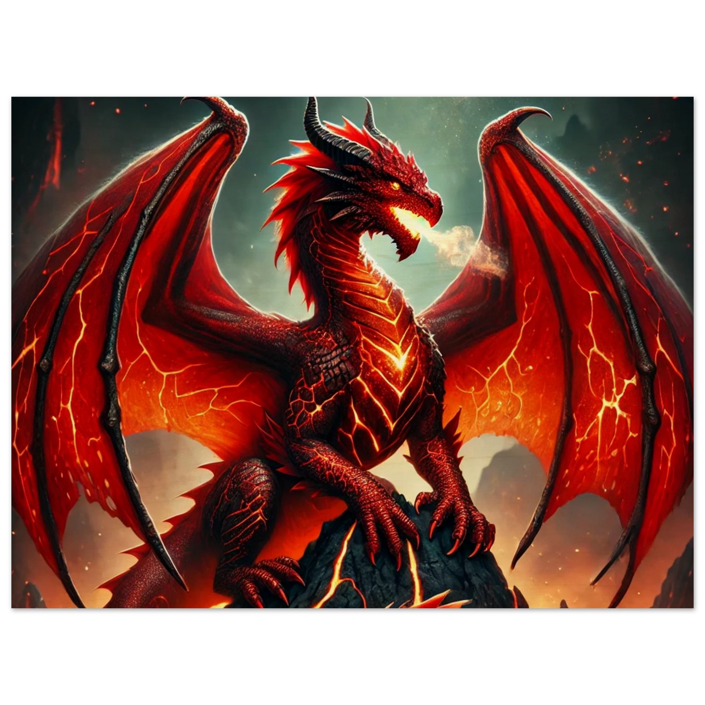 Bring die urgewaltige Energie von Pyrragon in dein Zuhause – auf nachhaltigem Birkenholz, das seinem feurigen Wesen eine natürliche, rustikale Tiefe verleiht. Jede Flamme, jede Schuppe wird durch die Maserung des Holzes verstärkt und macht diesen Druck zu einem einzigartigen Kunstwerk.