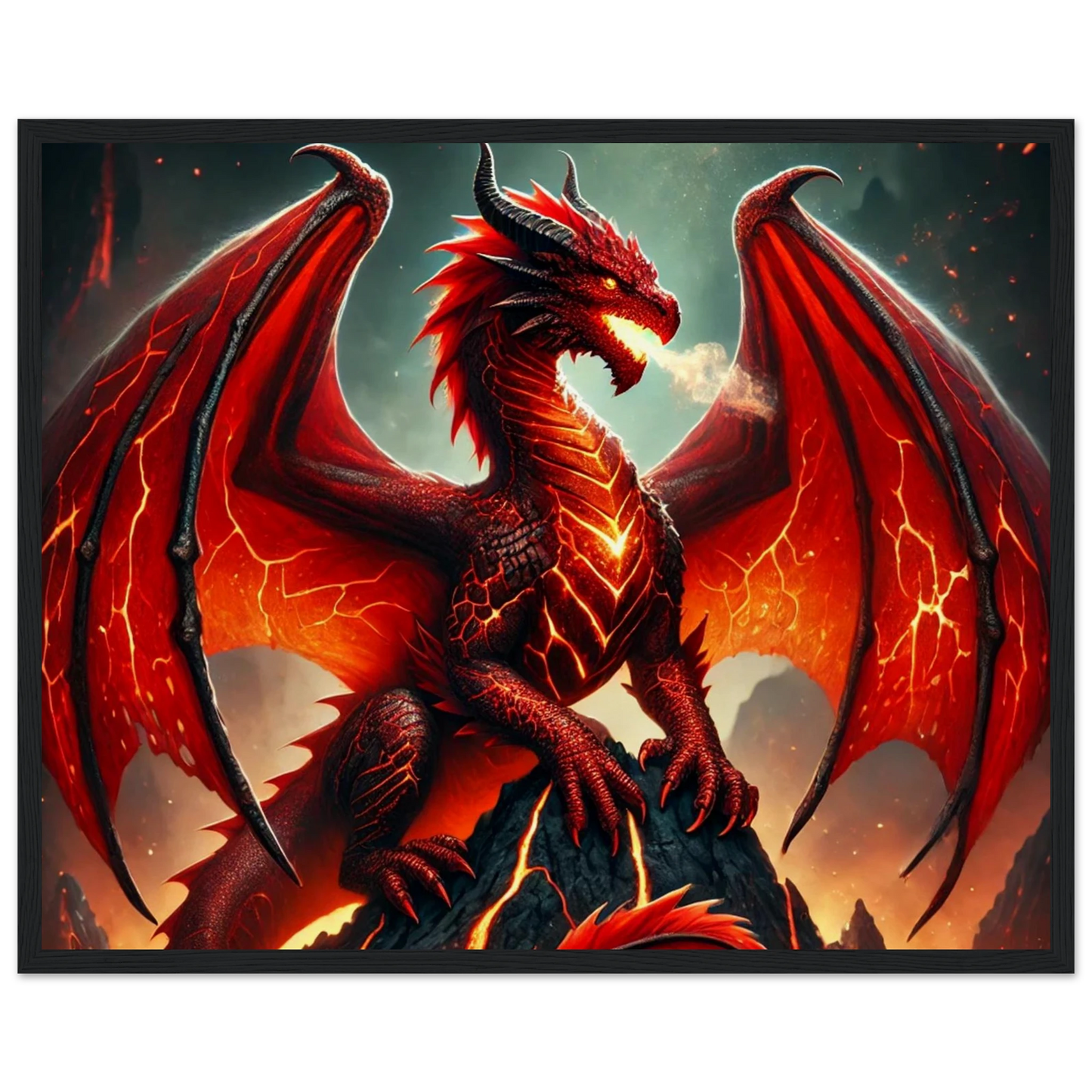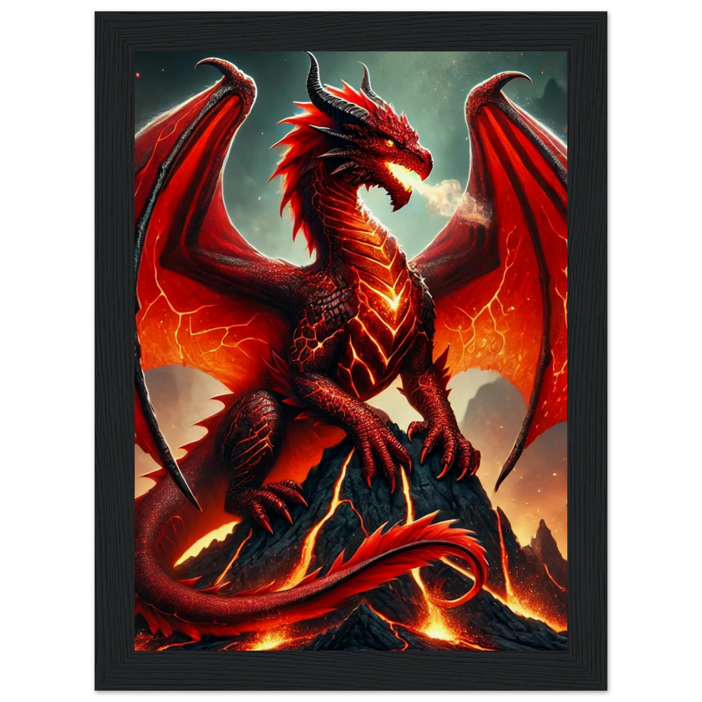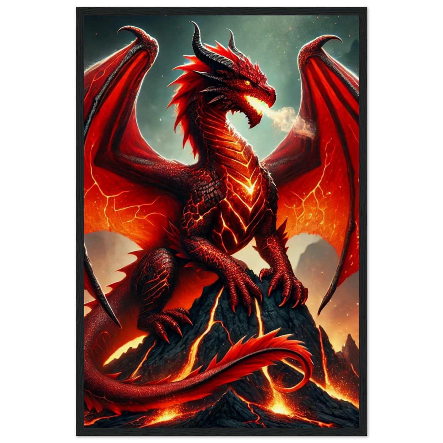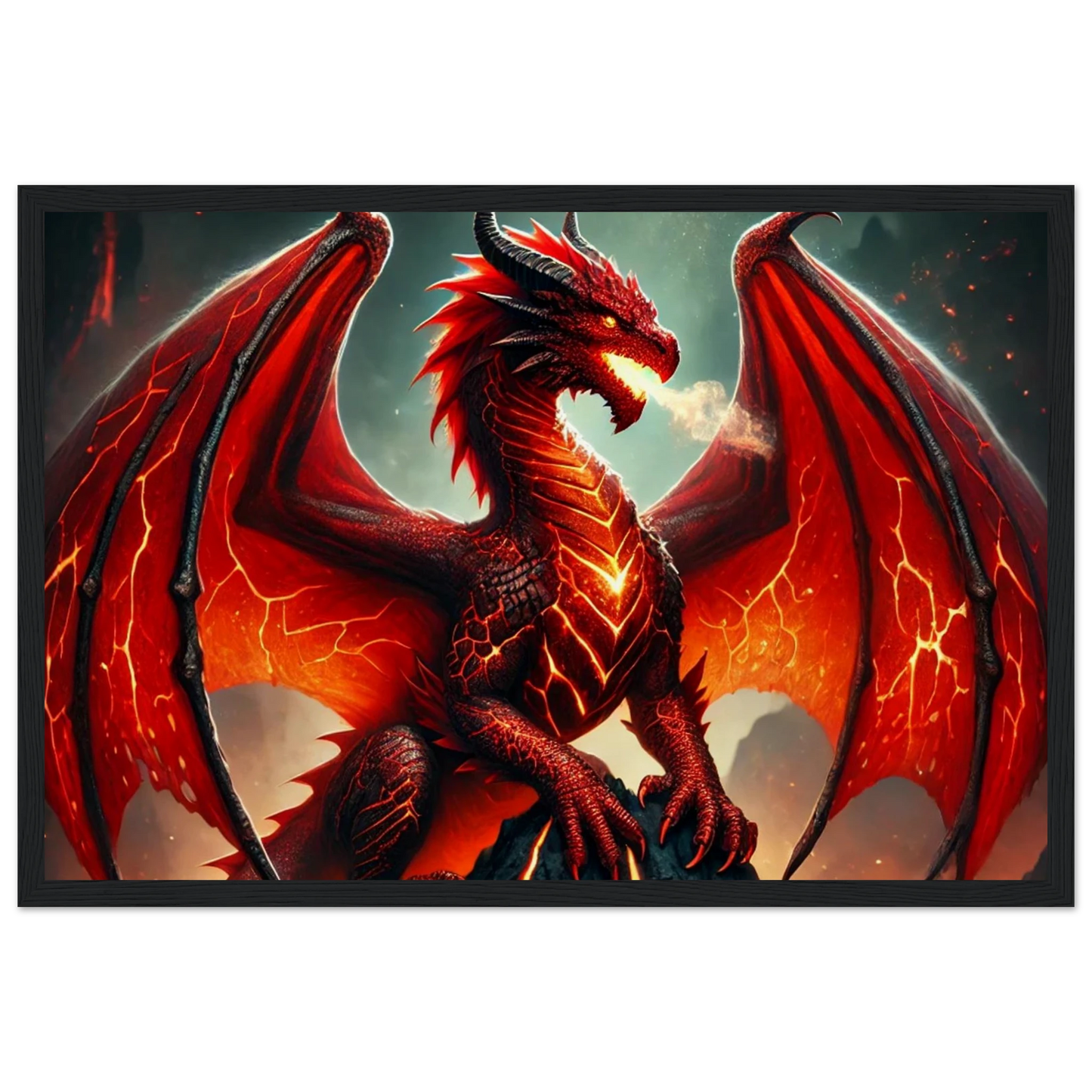 Pyrragon – Feuerfürst der Tiefen / Poster auf matten Papier in Museumsqualität mit Holzrahmen