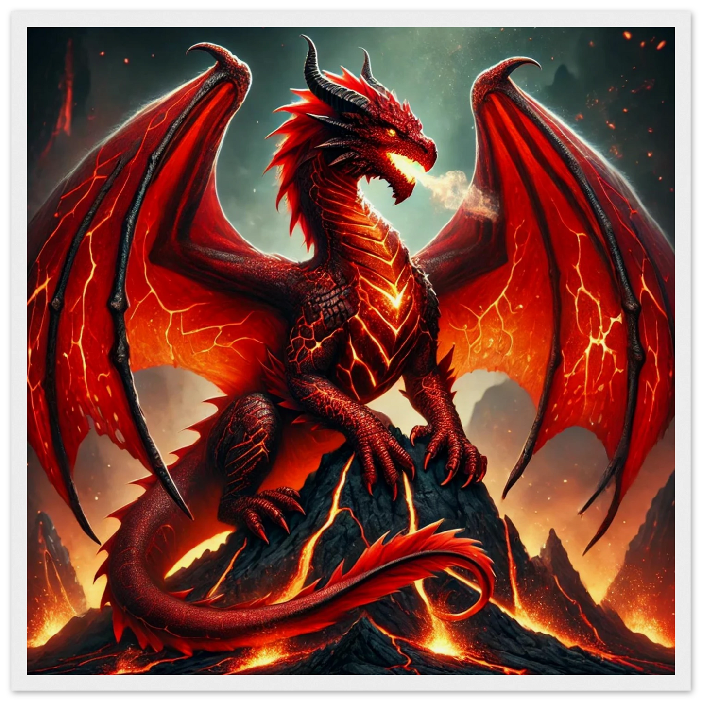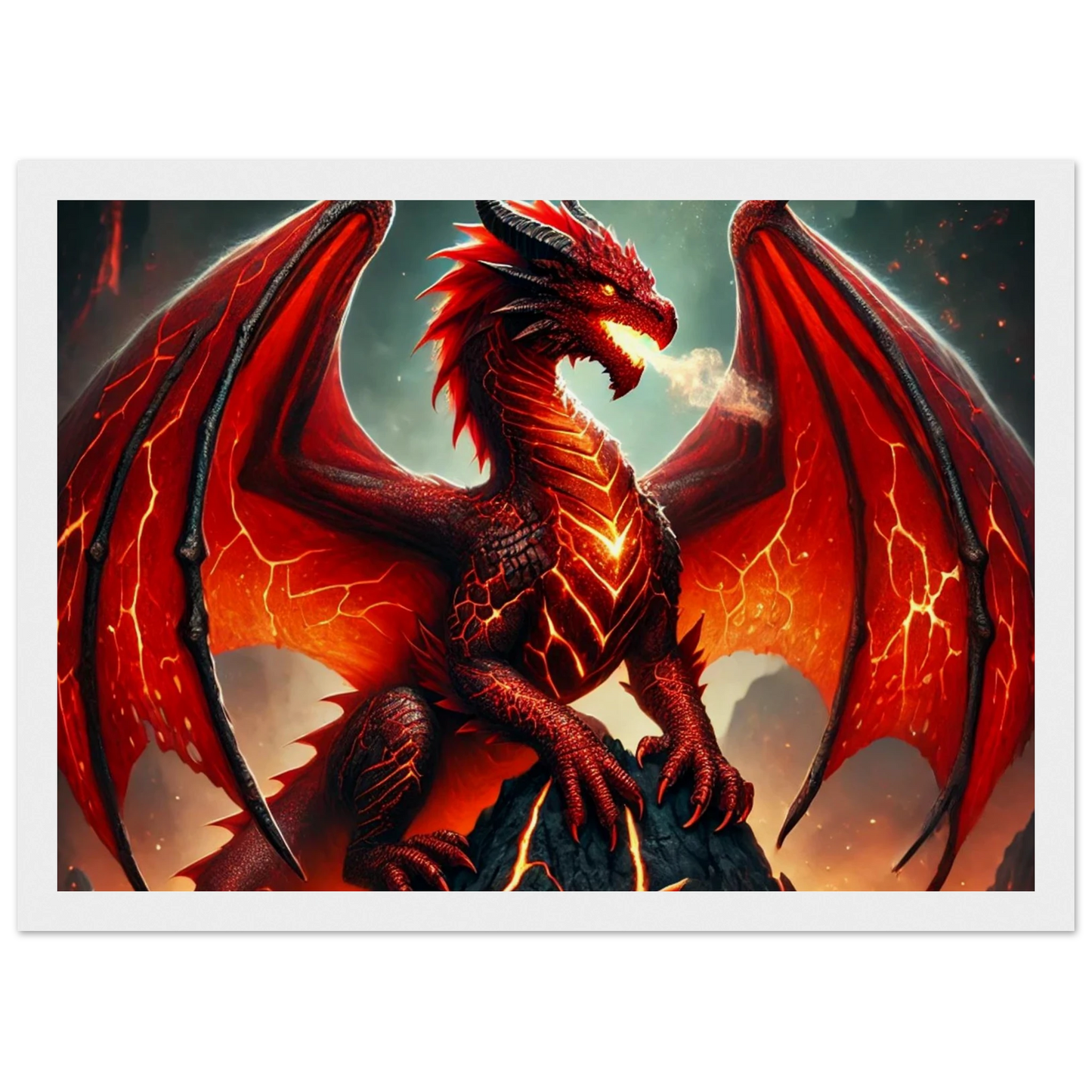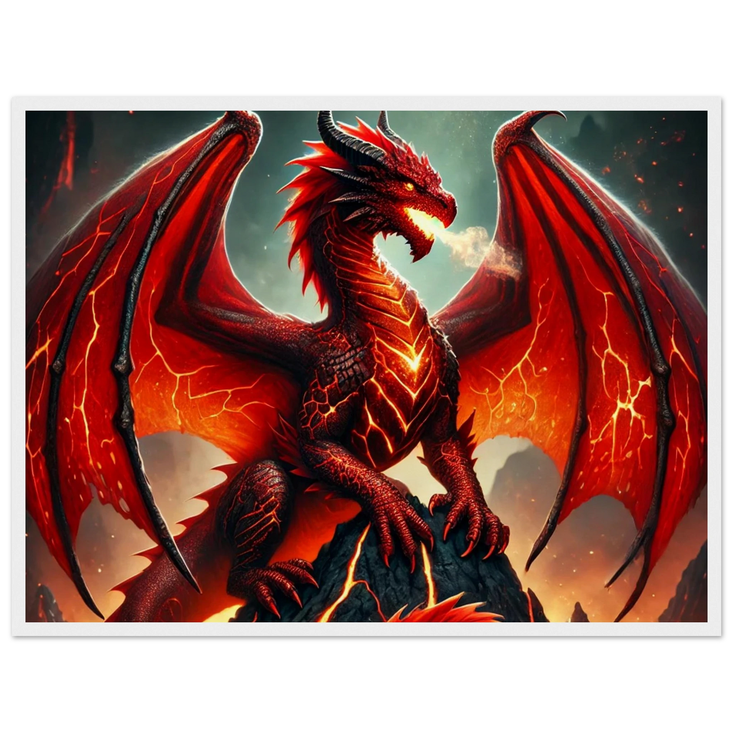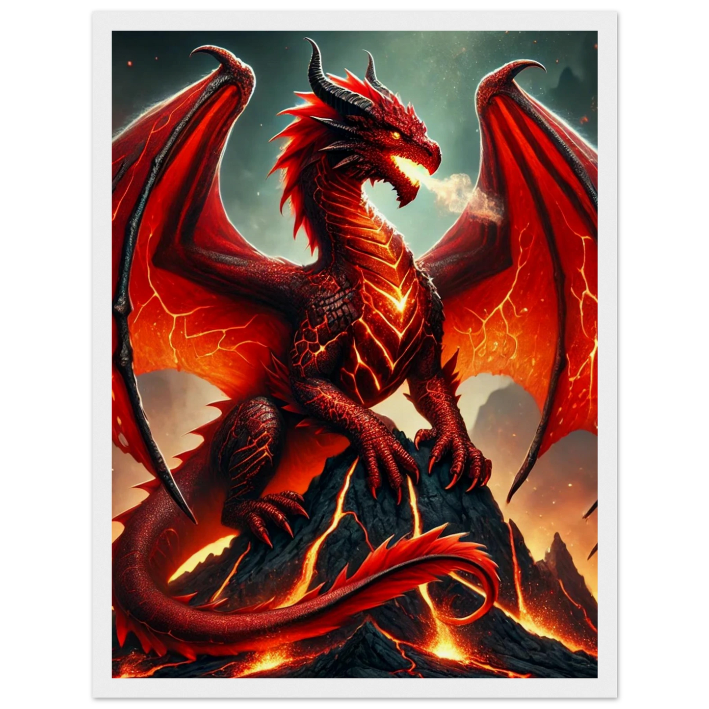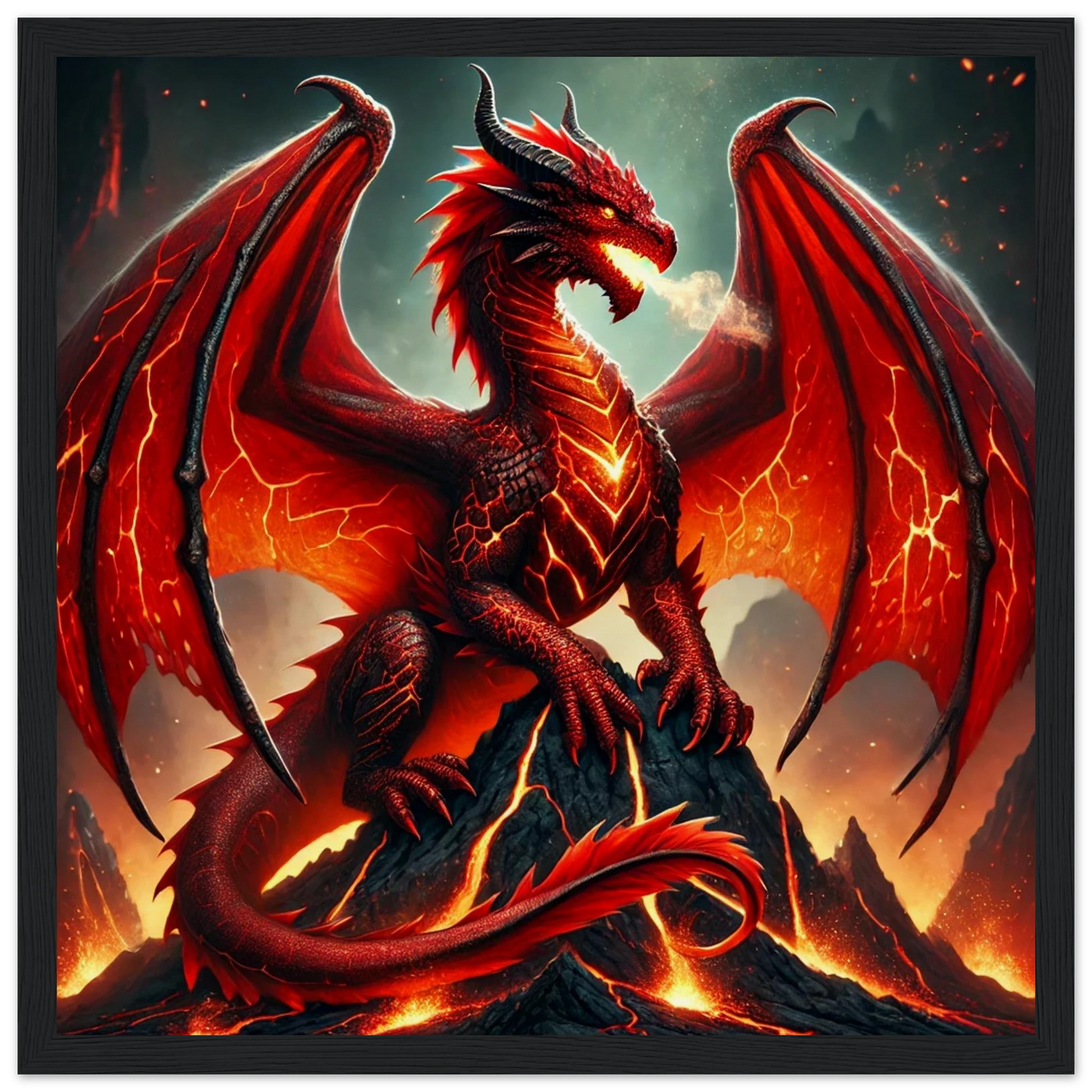 Pyrragon – Feuerfürst der Tiefen / Poster auf matten Papier in Museumsqualität mit Holzrahmen