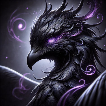 In tiefem Schwarz und geheimnisvollem Violett gehüllt, ist Schattenfeder eine majestätische Kreatur aus der Sphäre der Nacht. Ihre Augen leuchten wie gewebte Magie, ihre Federn flüstern von uralten Geheimnissen. Sie ist ein Wesen, das Eleganz mit dunkler Macht vereint.